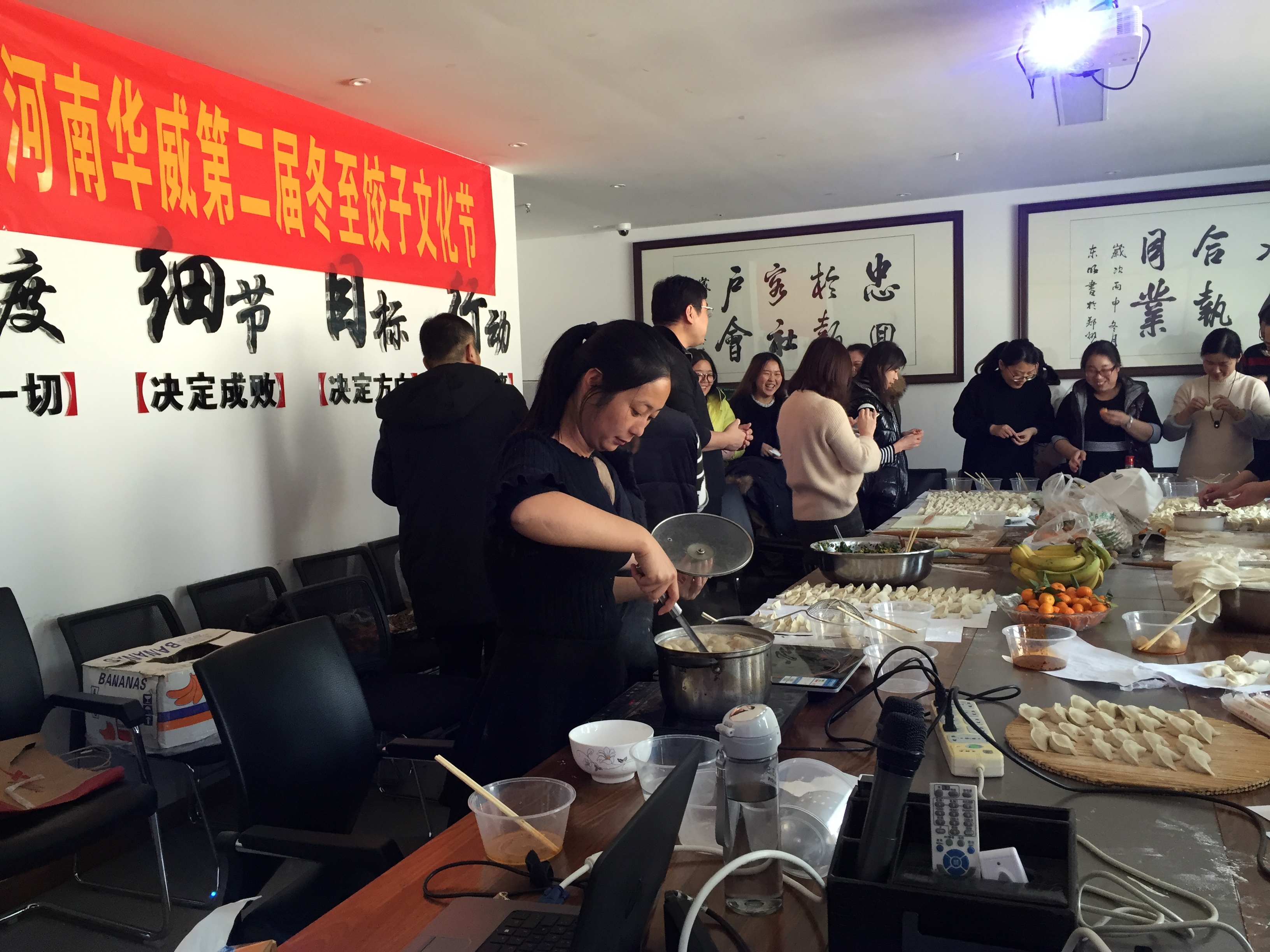 年年冬至公司都會(huì)舉辦這樣一個(gè)活動(dòng),不只是為了增進(jìn)員工與員工之間的協(xié)同合作關(guān)系,促進(jìn)感情和友誼,更是企業(yè)文化的一種深刻體現(xiàn)。剛到十點(diǎn),大家活兒就忙碌起來,就是為了趕在,有揉面的、搟皮的、包餃子的,都紛紛拿出各自的看家本領(lǐng)了。餃子也一排排的整齊放在案板上,有素餡的、肉餡的,包的圓的、扁的,各種形狀各種口味眼花繚亂,令人胃口大增。