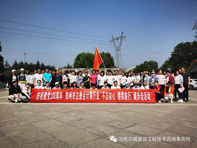 5月20日(星期四)河南華威平臺下河南金毅聯(lián)合會計(jì)師事務(wù)所參加了鄭州市注冊會計(jì)師行業(yè)黨委舉辦慶祝建黨100周年鄭州市注冊會計(jì)師行業(yè)“不忘初心 繼續(xù)前行”健步走活動。