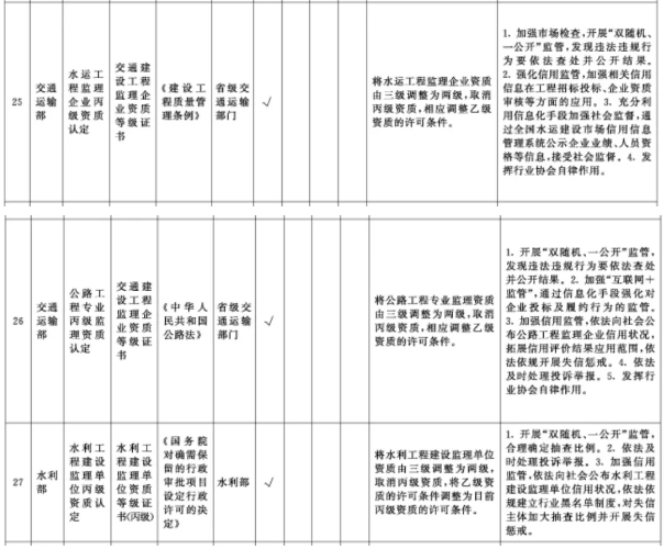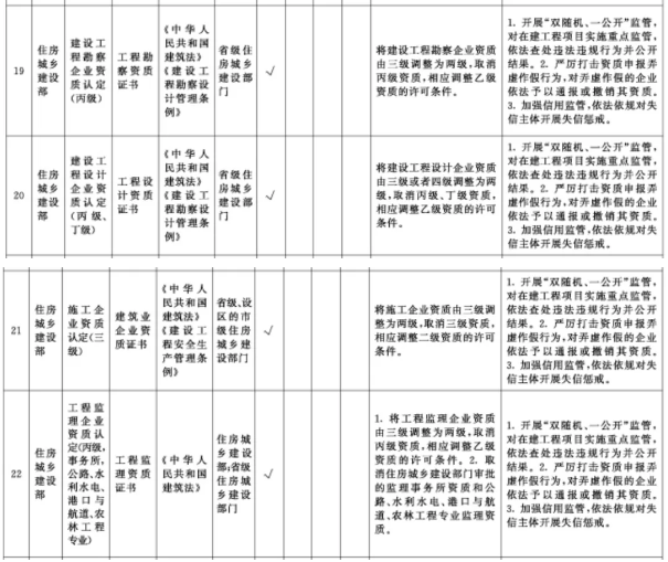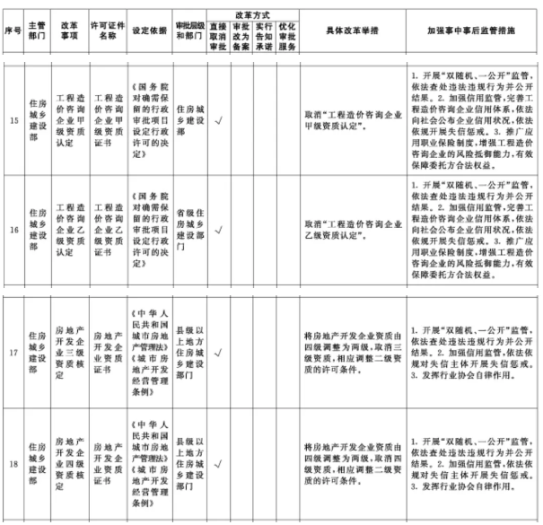 在全國(guó)范圍內(nèi)直接取消部分工程資質(zhì)審批,其中包括工程造價(jià)、施工三級(jí)等資質(zhì):