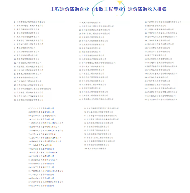近日,中國建設(shè)工程造價管理協(xié)會公示《2020年工程造價咨詢企業(yè)造價咨詢收入排名》。