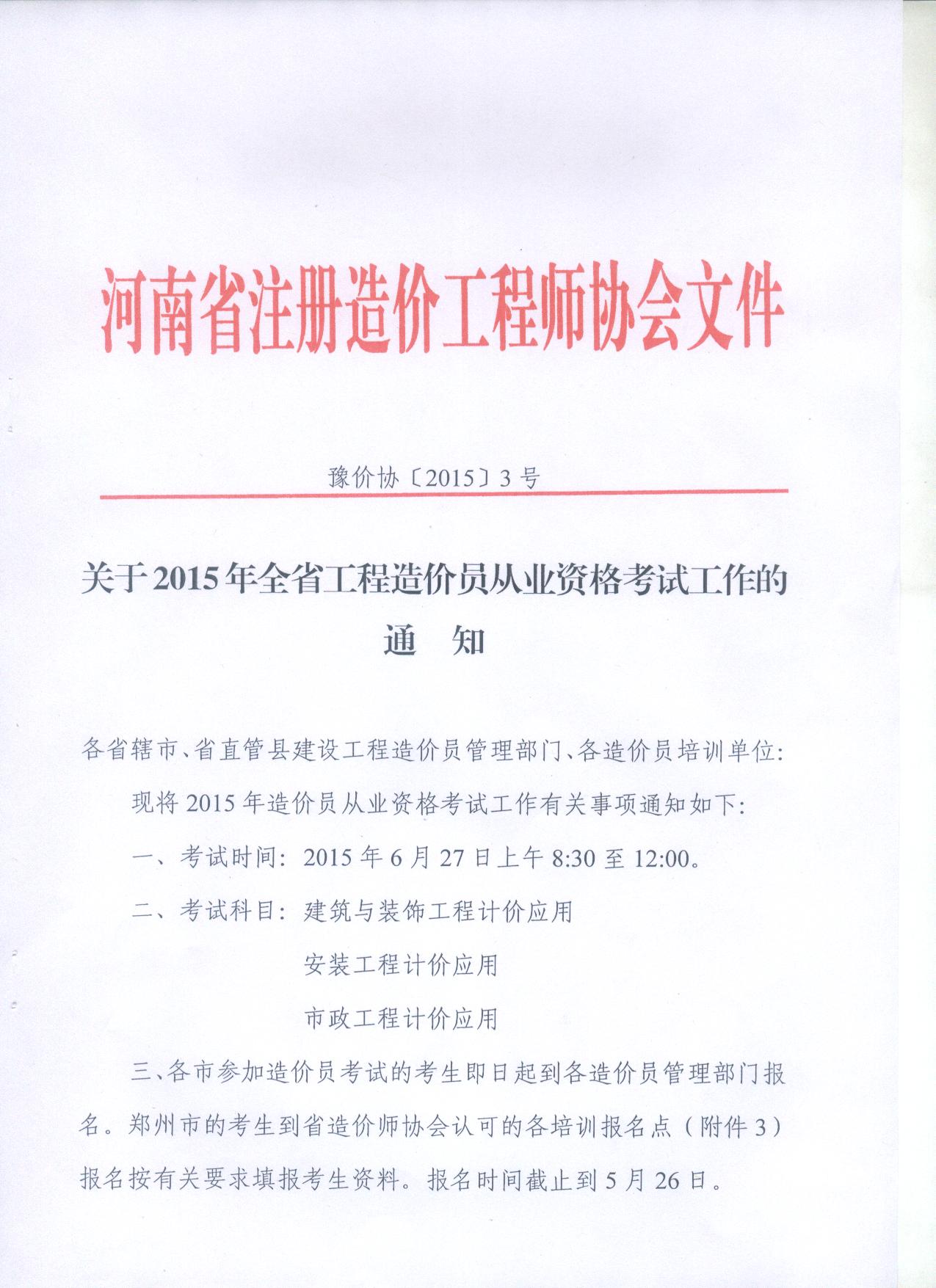 • 關(guān)于2015年全省工程造價(jià)員從業(yè)資格考試工作的通知